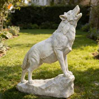 MILY Custom Design Hand Carved Life Size Marble Stone Wolf Statue for Sale